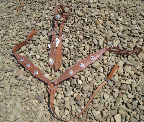 Medium oil Cody Brand Headstall and Breastcollar set with silver Texas Star conchos.