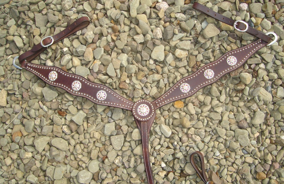 Dark oil Cody Brand scalloped breastcollar with Volcano and Crystal AB stones.